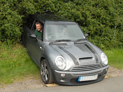 As I pulled into the lane, I was greeted by a very red faced Sheila who whilst reversing out of the drive had hit the accelerator and not the break - ramming her Mini Cooper up the bank and into the hedge!